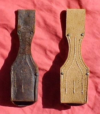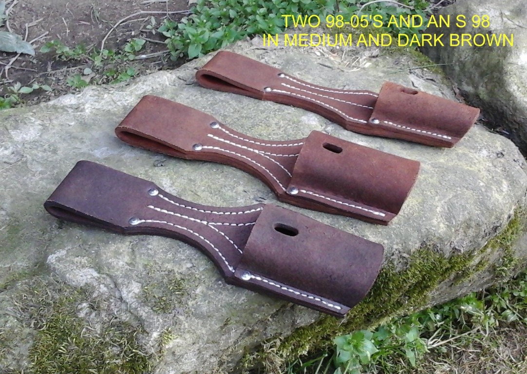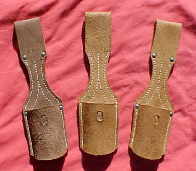 are made with heavy leather, rough side out (exdept the Bavarian type,