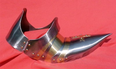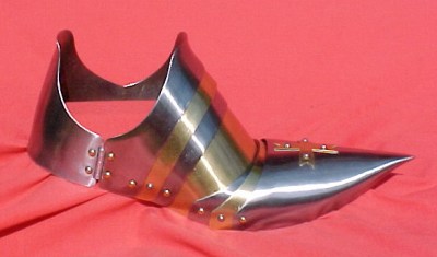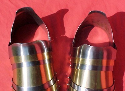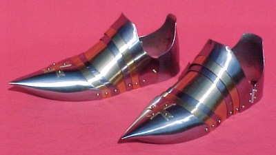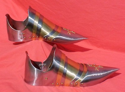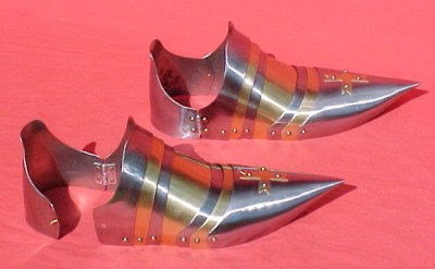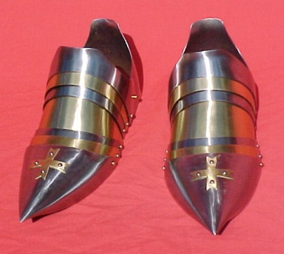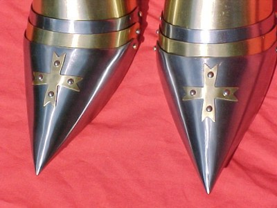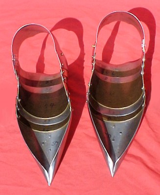 Maltese cross on the toecap. They open at the heel by means of a hinge and spring-pin fastening.