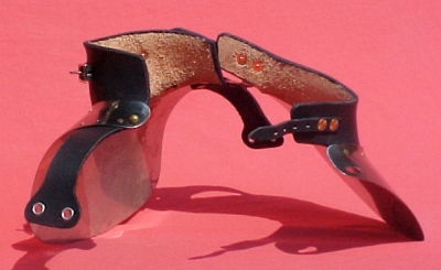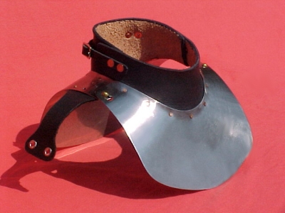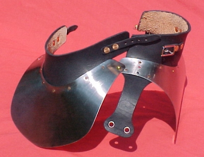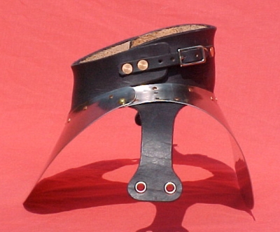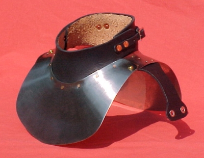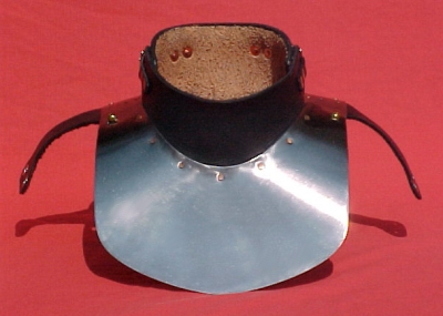 The gorget closes via two straps and buckles and a mushroom-and-keyhole arrangement.