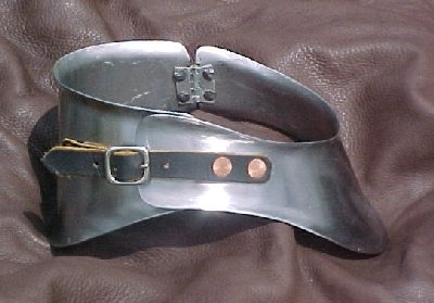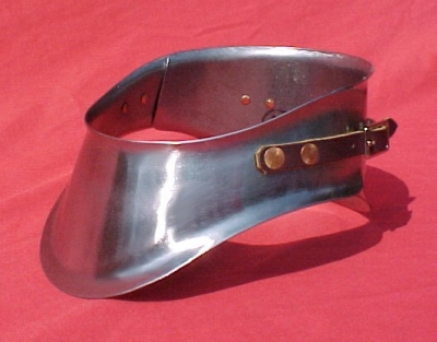 This is a very basic plate gorget. It is available with a hinge/strap and buckle