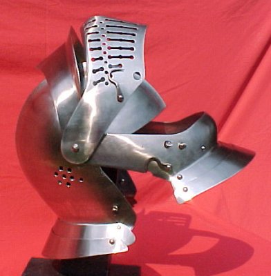 and bevor rotate on a common pivot. The example shown has a lifting, pierced